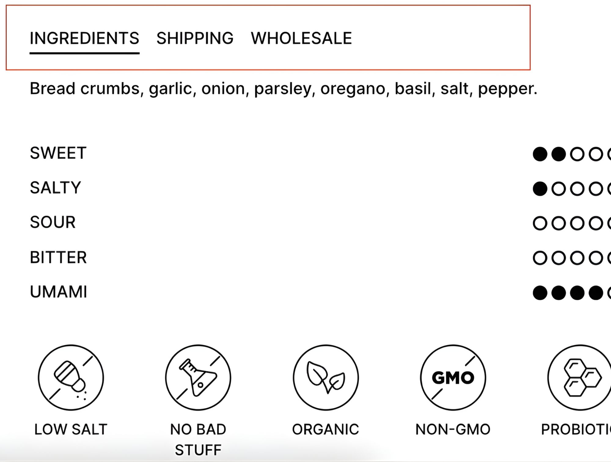 Organize detailed information in tabs (description, specs, shipping, etc.)